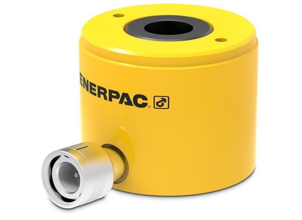 Why use the Enerpac RCH-Series Single Acting Hollow Plunger Hydraulic Cylinders? - Enerpac cylinders are built to withstand tough conditions and demanding applications. These RCH cylinders have a baked enamel finish to resist corrosion. They offer versatility in testing, maintenance, and tensioning applications.