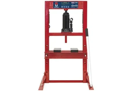 Hydraulic Press 5.4 Tonne Economy Bench Type by Sealey. This economy model is suitable for serious enthusiasts or occasional professional use. Made from high-quality steel with a powder-coated paint finish to help corrosion resistance. Bottle-type hydraulic unit. des two table plates.