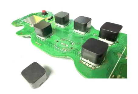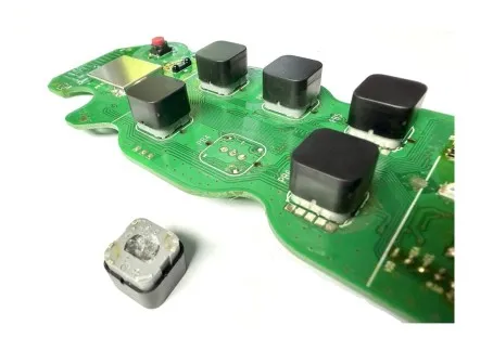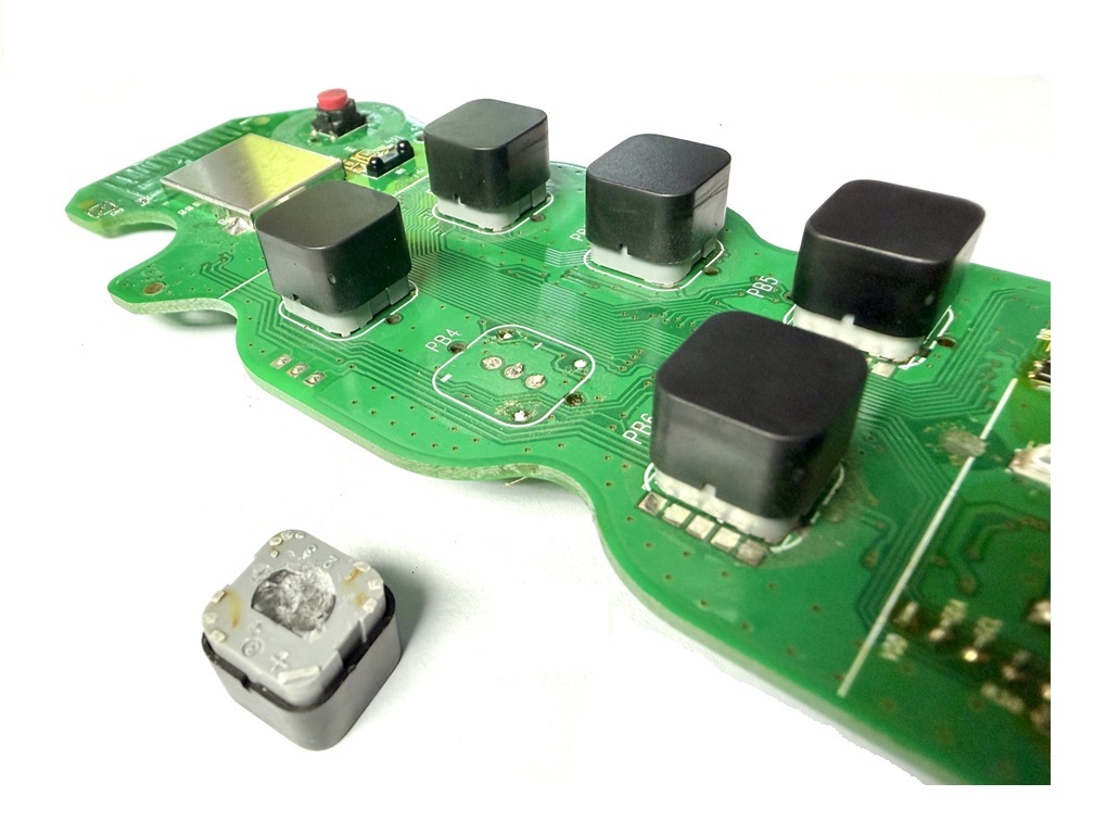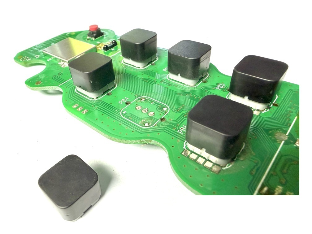 This replacement button requires soldering during installation. The existing button must be carefully desoldered before fitting the new part.