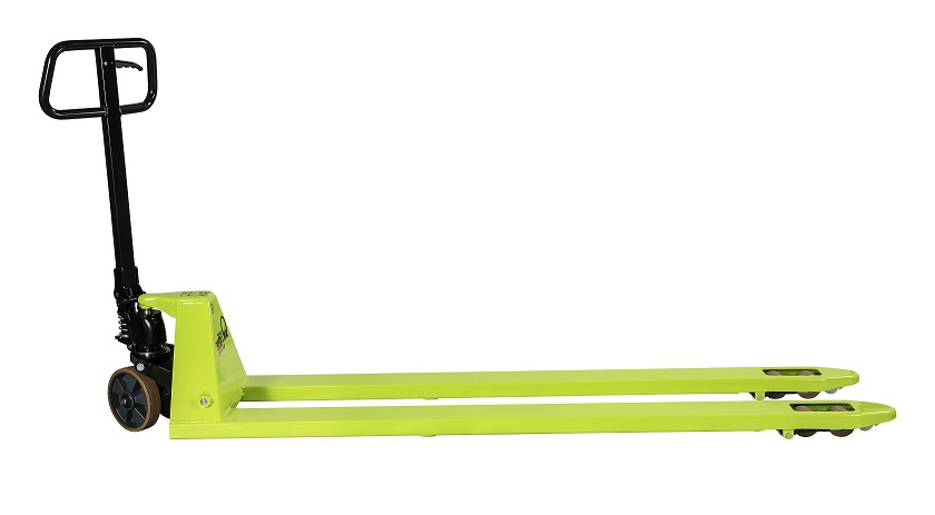 The GS EVO long forked Pallet trucks from Pramac are a more professional and quality truck designed for intensive use with maximum easiness of operation to the operator due to their superior ergonomics - Fitted with a proportional lowering valve that gives a softer more controlled lowering movement meaning the EVO range is perfect in industries that need to transport fragile and delicate loads such as crystal, glass and ceramics. The 2m Long forks offer great stability when transporting extra long loads. These are European-manufactured machines, reliable and easy to maintain. spares available on request