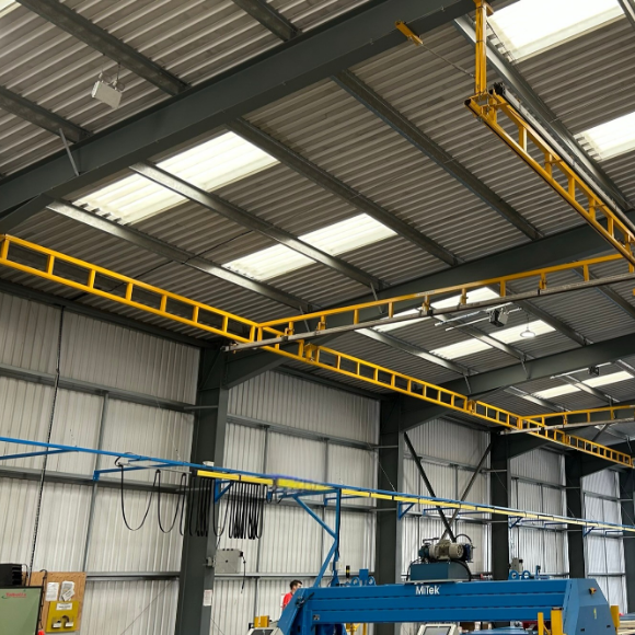 Every project is unique — some sites require free-standing steelwork for maximum flexibility, while others benefit from ceiling-mounted systems that free up valuable floor space. In each case, we work closely with clients to understand their workflow, structural constraints and future growth plans before creating a tailored crane solution.