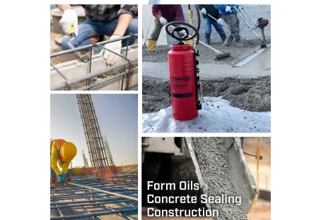 The Chapin industrial fkm seal sprayer also features a Tri-Lock ergonomic pump handle that locks in place. The internal pump is brass. Viton seals and gaskets are designed to handle a variety of chemicals including curing agents & pattern-imprinted concrete sealers. Suitable for use with Form Oil, Concrete Additives.