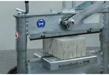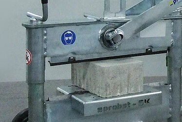 The Probst STS-43 Block and Stone Cutter are supplied with a tilted, rigid supporting table, which ensures all blocks are cut at the same angle.